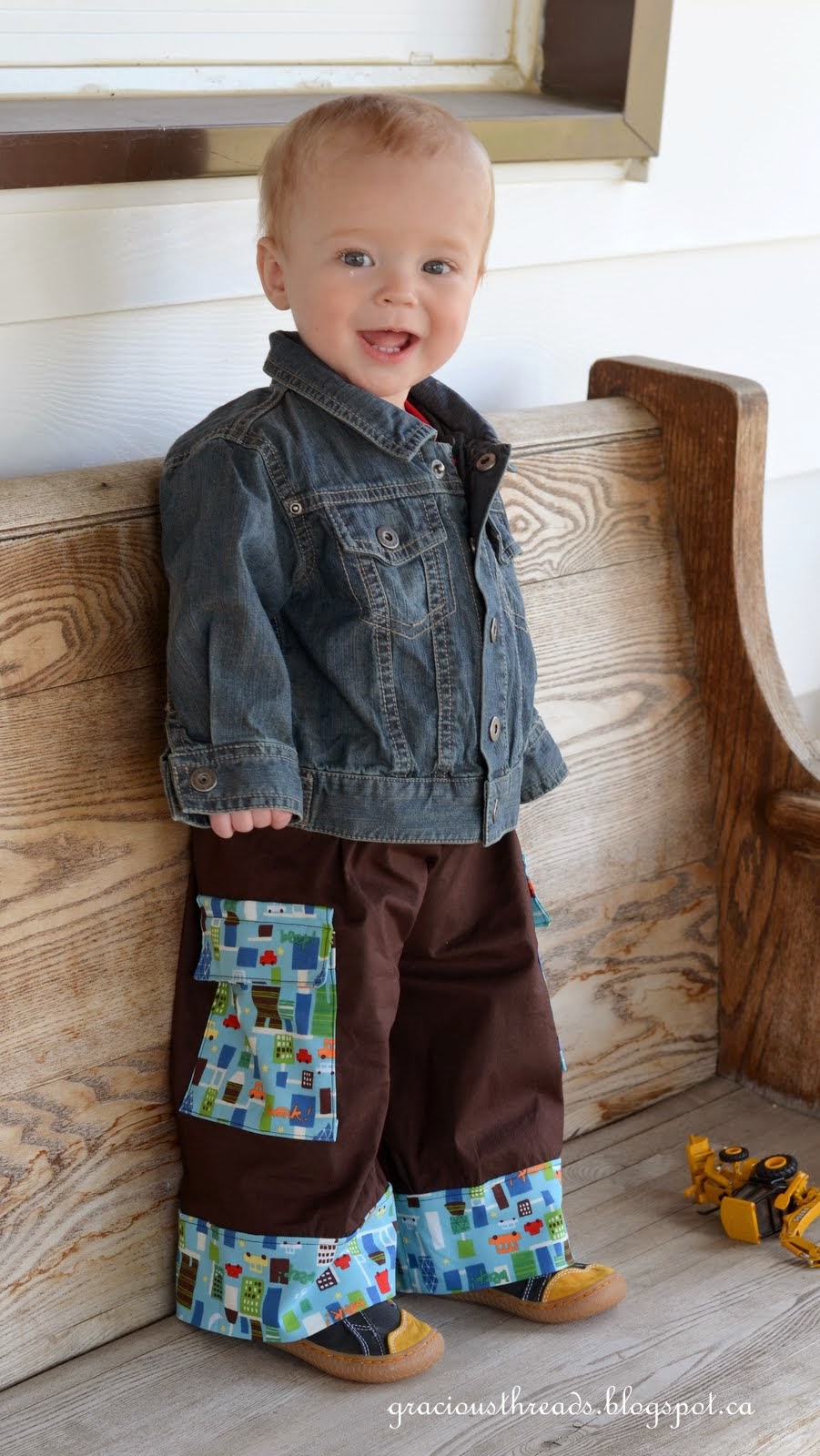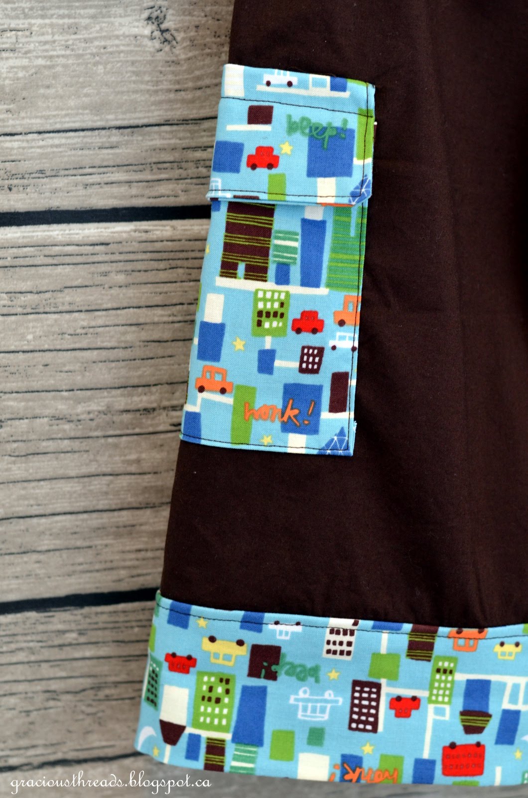 My kids love pockets, especially to carry in things that should probably be left outside! While my little guy is a bit young to be collecting leaves, rocks, and bugs, I thought his pants could use a set too.