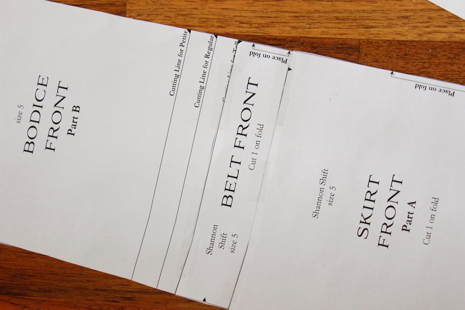 Guys, This is sooooooo easy it is almost embarrassing to call this a tutorial.... If you want the Shannon as a one piece pattern - just tape the pieces together as seen below.